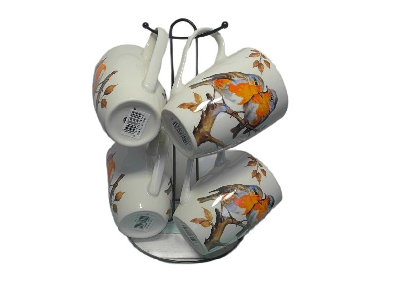Zestaw 4 ceramicznych kubków na stojaku, pojemność 350 ml.